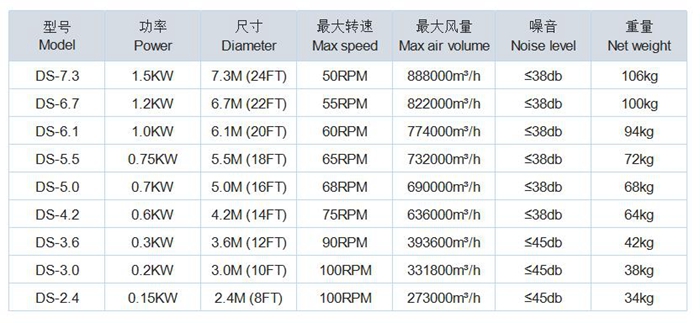 DS系列外轉(zhuǎn)子超大吊扇規(guī)格